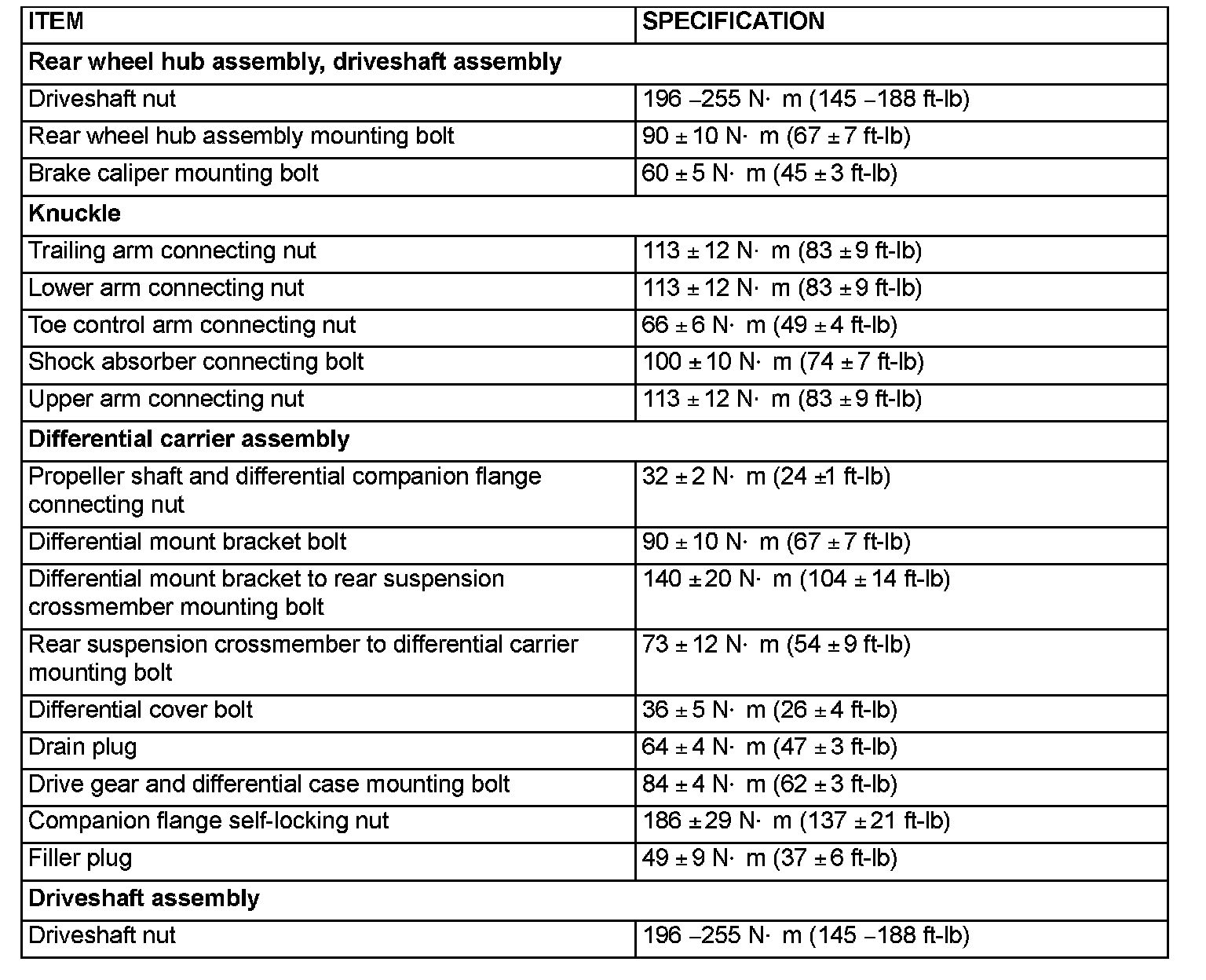 FASTENER TIGHTENING SPECIFICATIONS