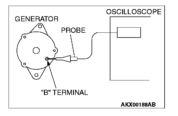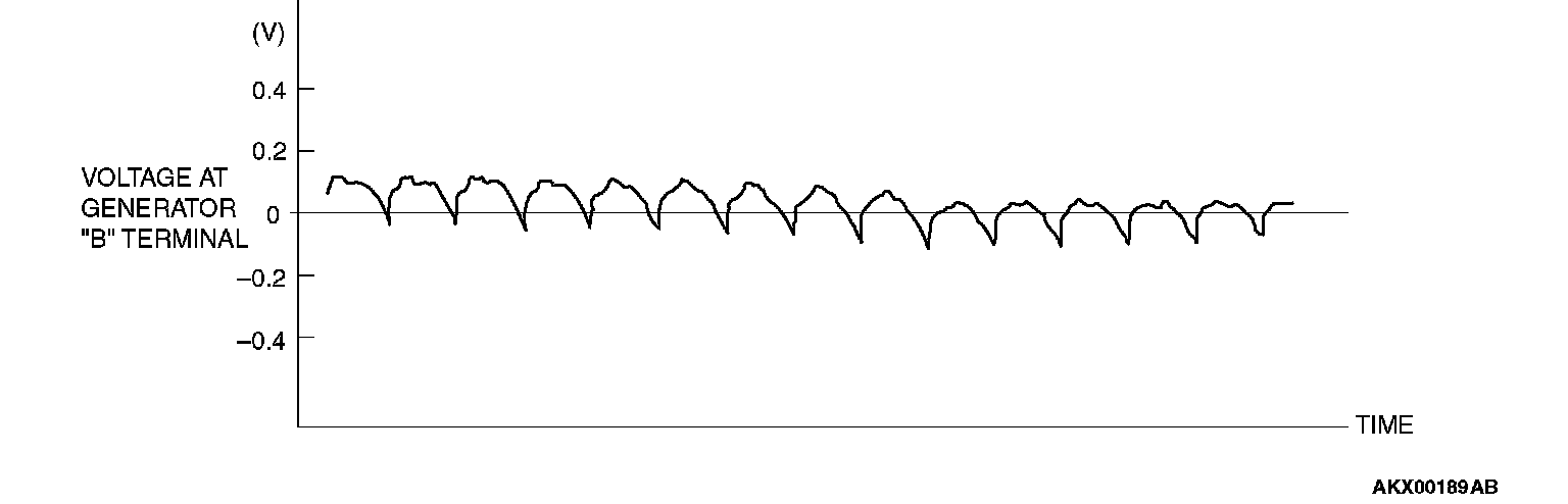 If the ripple height is abnormally high (approximately 2 V or more during idling), the wires between the generator "B" terminal and the battery have broken due to fuse blowing, etc. The generator is usually operating properly.