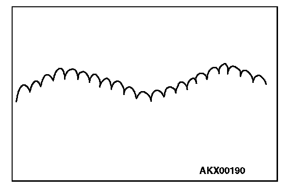 - Identification of abnormal waveforms is easier when there is a large output current (regulator is not operating). (Waveforms can be observed when the headlights are illuminated.)