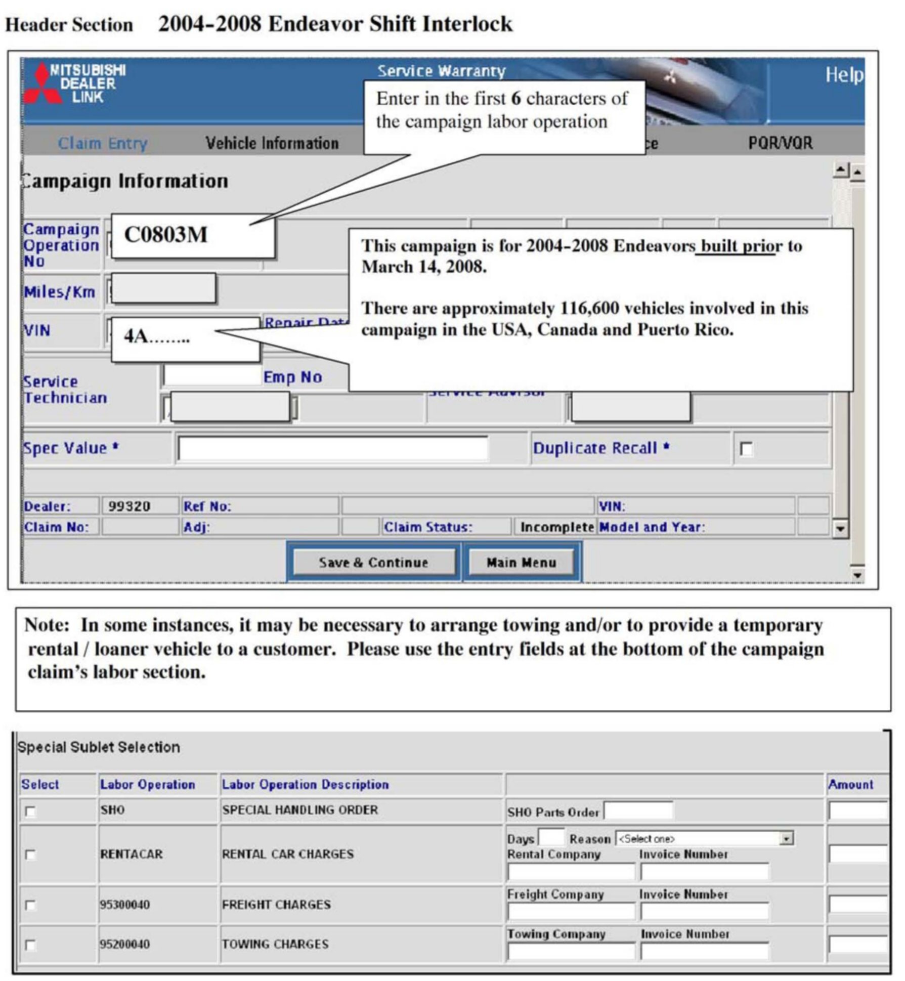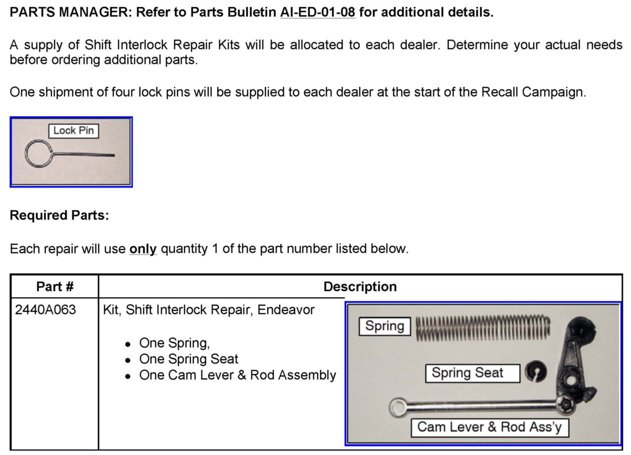 ENDEAVOR SHIFT INTERLOCK SAFETY RECALL CAMPAIGN