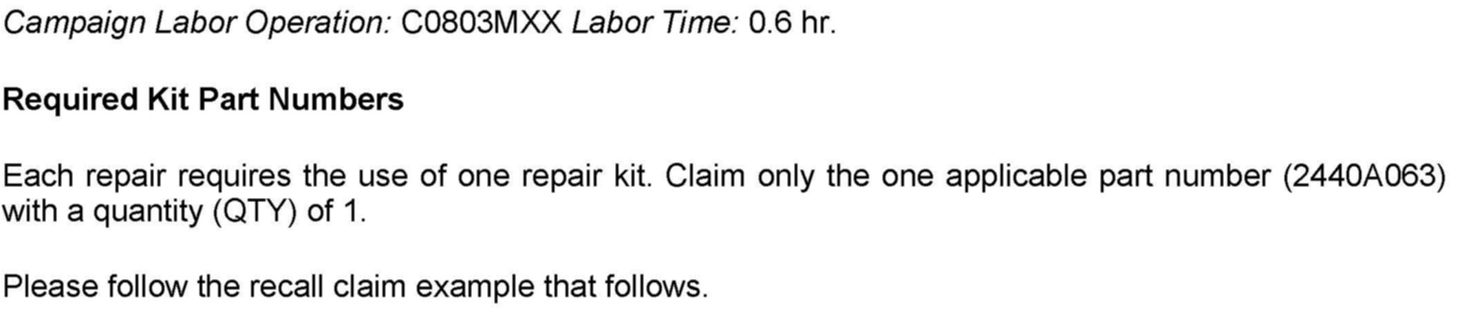 Follow the instructions in the Repair Procedure in this Safety Recall Bulletin to install a repair parts kit to eliminate this condition.