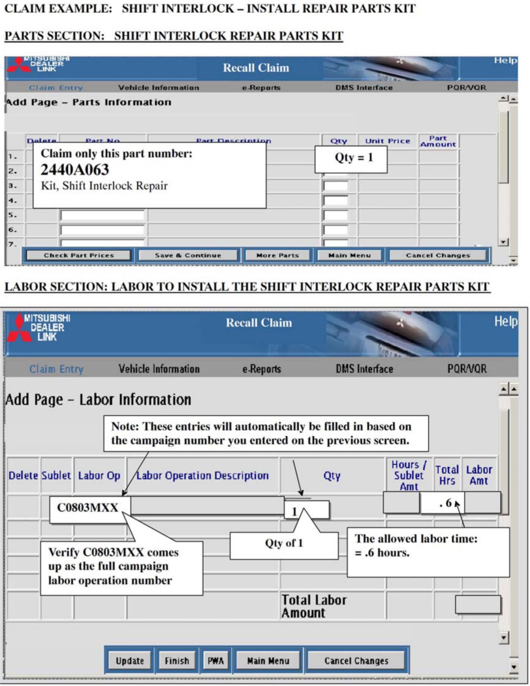 A letter will be sent to all owners of affected vehicles telling them to bring their vehicle to their Mitsubishi Motors dealer to have repairs made to the shift interlock. A copy of the customer notification letter is shown in this bulletin.