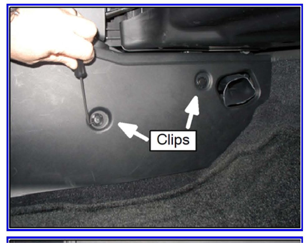 12. Remove 2 clips from the floor console side panel as shown.