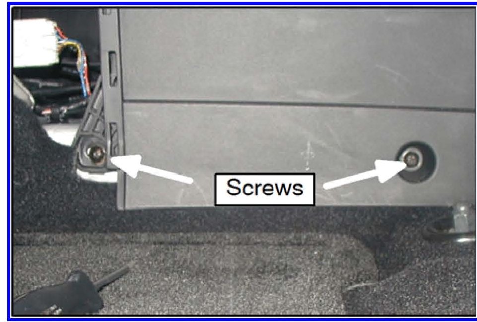 19. Remove 2 floor console retaining screws in the bottom of the storage area.