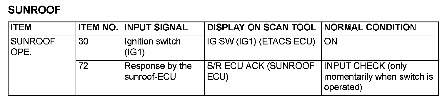 The table below shows the service data and their normal condition, which are displayed during the "Function Diag." The column "Normal condition" shows values that are shown when each operation is made.