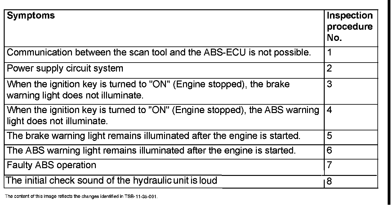 The contents of this article and images reflect the changes identified in TSB-11-35-001.SYMPTOM CHART