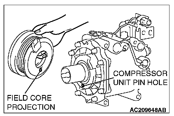 Line up the pin hole on the compressor unit with the field core projection and attach.