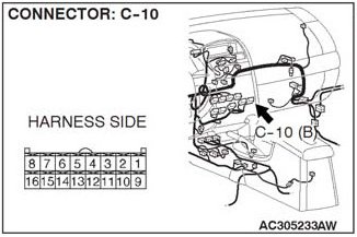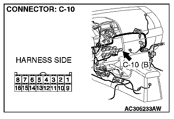 STEP 5. Check A/C-ECU connector C-10 for loose, corroded or damaged terminals, or terminals pushed back in the connector.