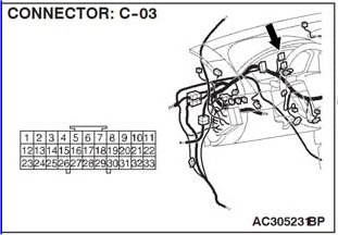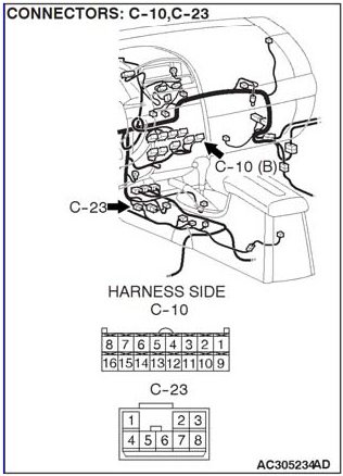 NOTE: Also check intermediate connector C-23 and joint connector C-03 for loose, corroded or damaged terminals or terminals pushed back in the connector. If intermediate connector C-23 or joint connector C-03 is damaged, repair or replace the connector as described Harness Connector Inspection.