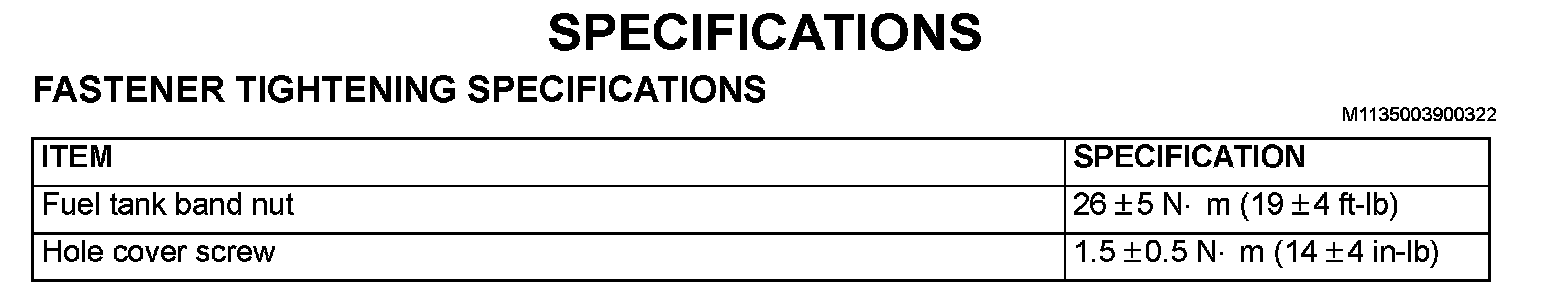 Fuel Tank: Specifications