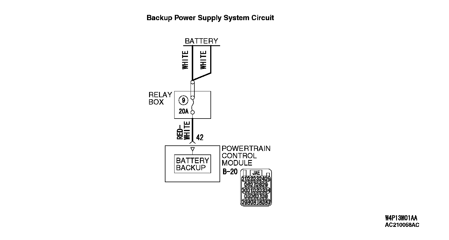 PCM (terminal number 42) receives battery positive voltage from the battery.