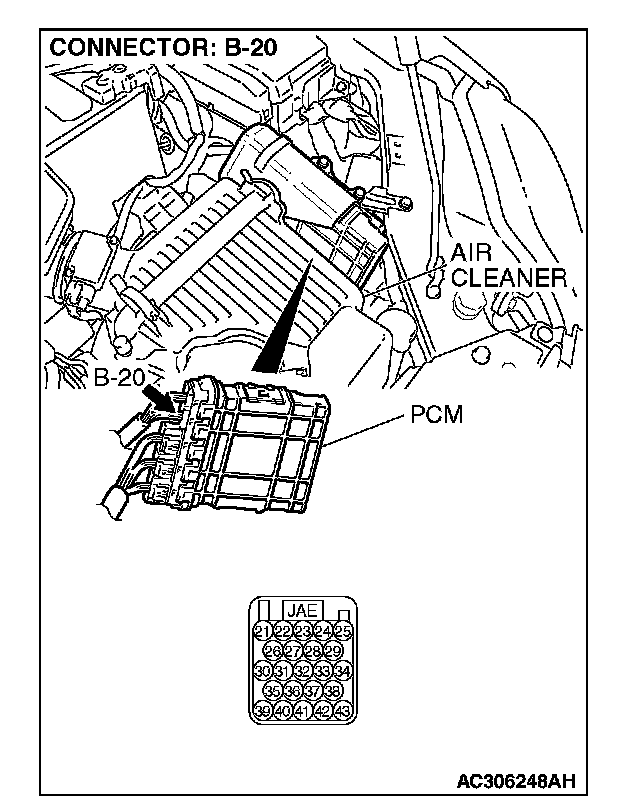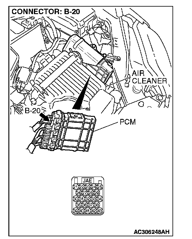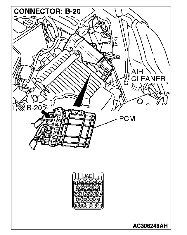 STEP 3. Check PCM connector B-20 for loose, corroded or damaged terminals, or terminals pushed back in the connector.