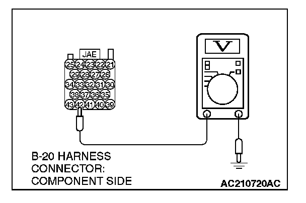 STEP 2. Measure the backup power supply voltage at PCM connector B-20 by using check harness special tool MB991923.