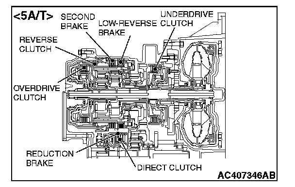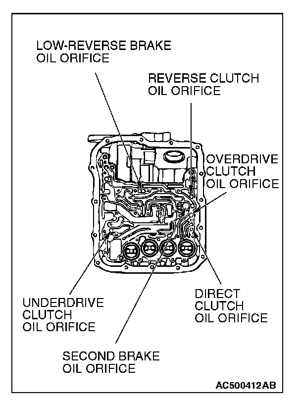 (2) Blow 108 kPa (15 psi) compressed air into the each brake oil orifice and clutch oil orifice of the transaxle case, and check if each brake and each clutch piston move and air pressure is maintained.