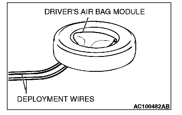 CAUTION: Once disconnected, both electrodes of the driver's air bag module connector short automatically to prevent accidental deployment caused by static etc. Still, in consideration of the accidental deployment, store the air bag module on a flat place with deployment surface facing up. Do not put anything on it.