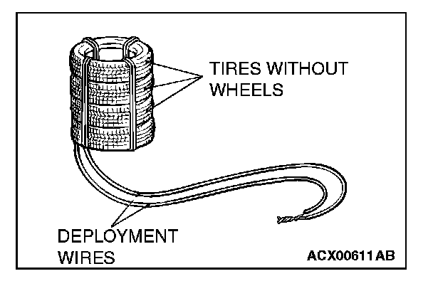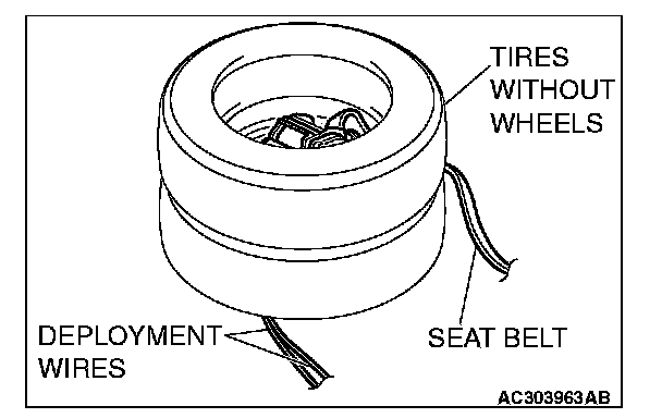 - During deployment, the connector of SRS air bag adapter harness (MB686560) must not be between the tires.