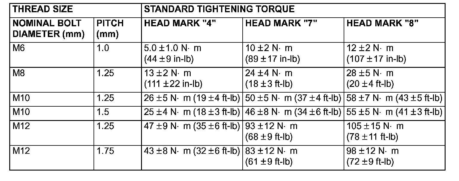 TIGHTENING TORQUEEach torque value in the table is a standard value for tightening under the following conditions.