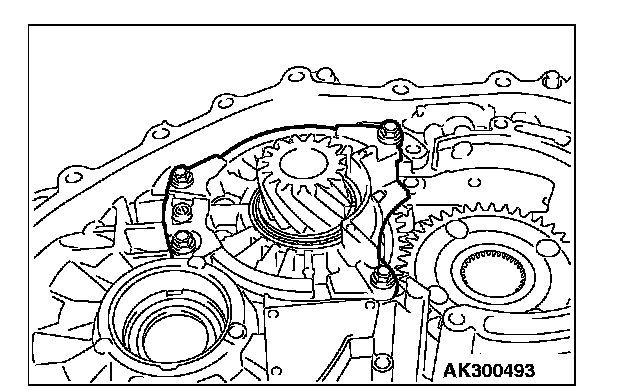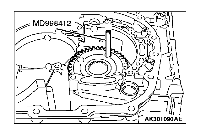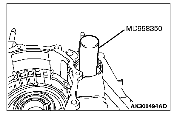 1. Install special tool MD998412 in the installation screw hole of the transfer drive gear bearing located in the transaxle case. Using this as a guide, install the transfer drive gear bearing and gear in the transaxle case.