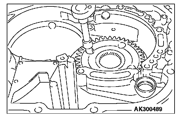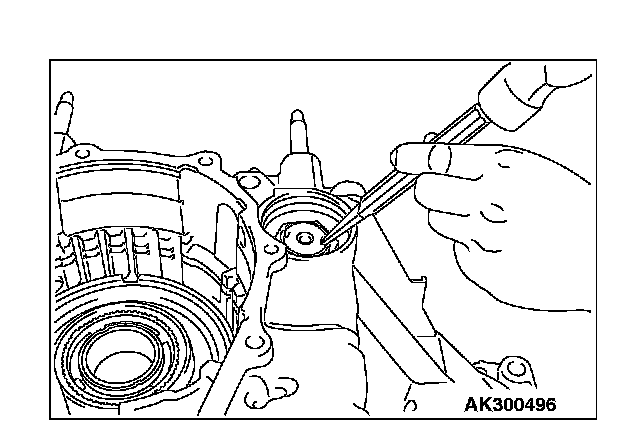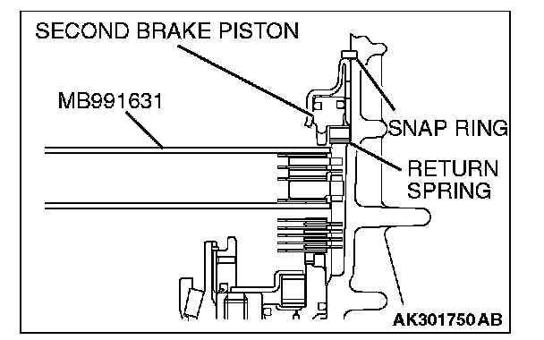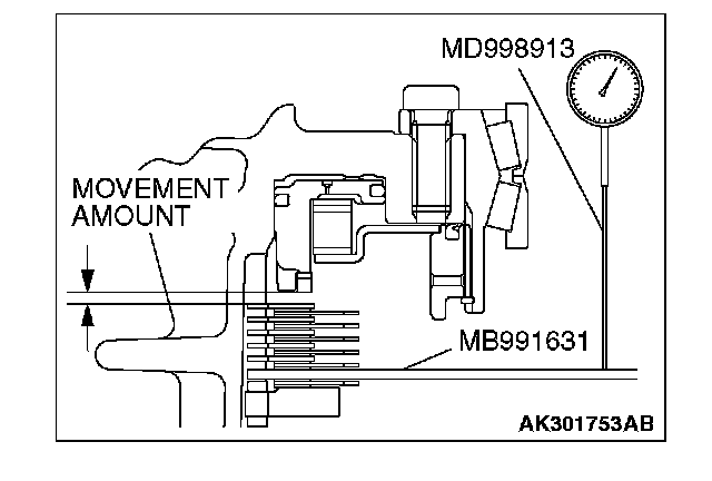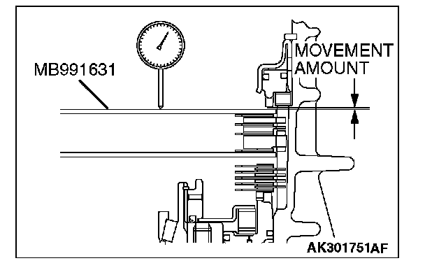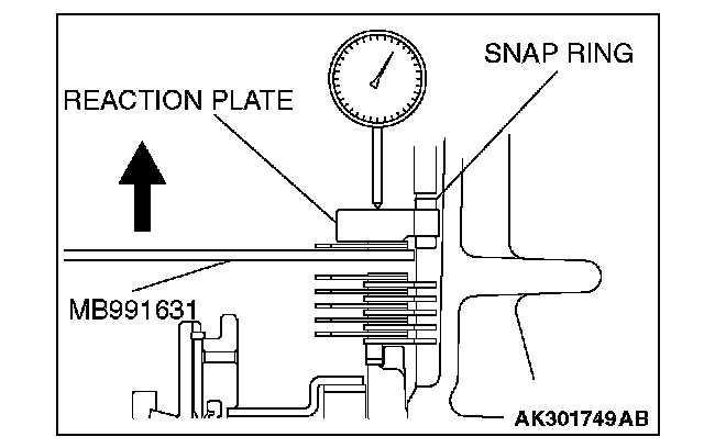 12. Move special tool MB991631 to measure the end play of reaction plate. Then replace the snap ring installed in step 11 to adjust the end play to standard value.