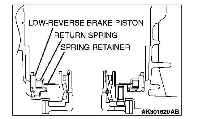 3. Install the low-reverse brake piston, return spring, and spring retainer into the transaxle case.