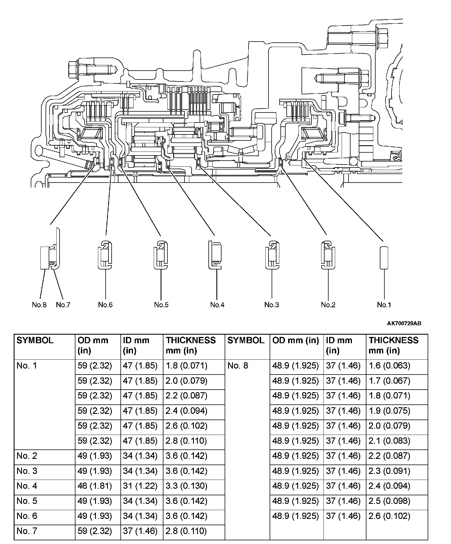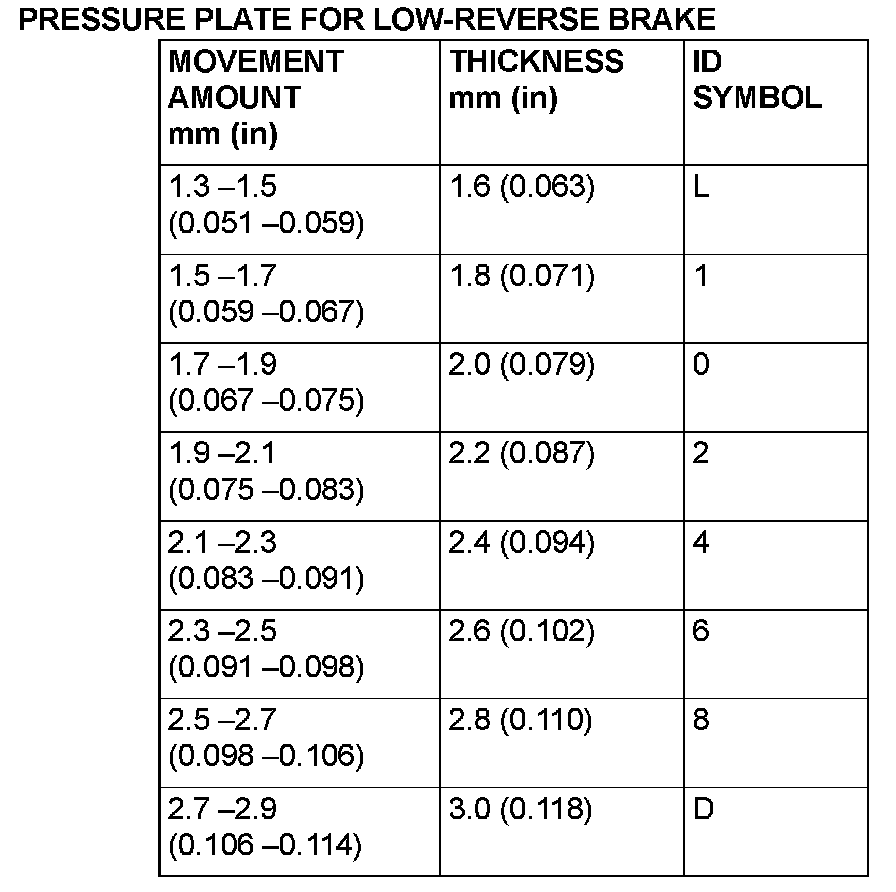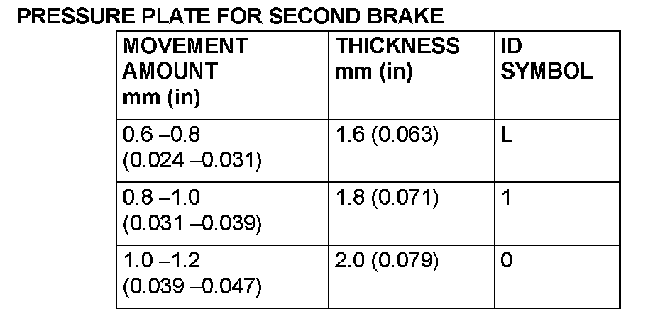 17. Select a pressure plate whose thickness corresponds to the measured amount of movement from the following table.