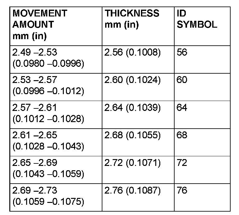 28. Select a spacer whose thickness corresponds to the measured amount of movement from the following table.
