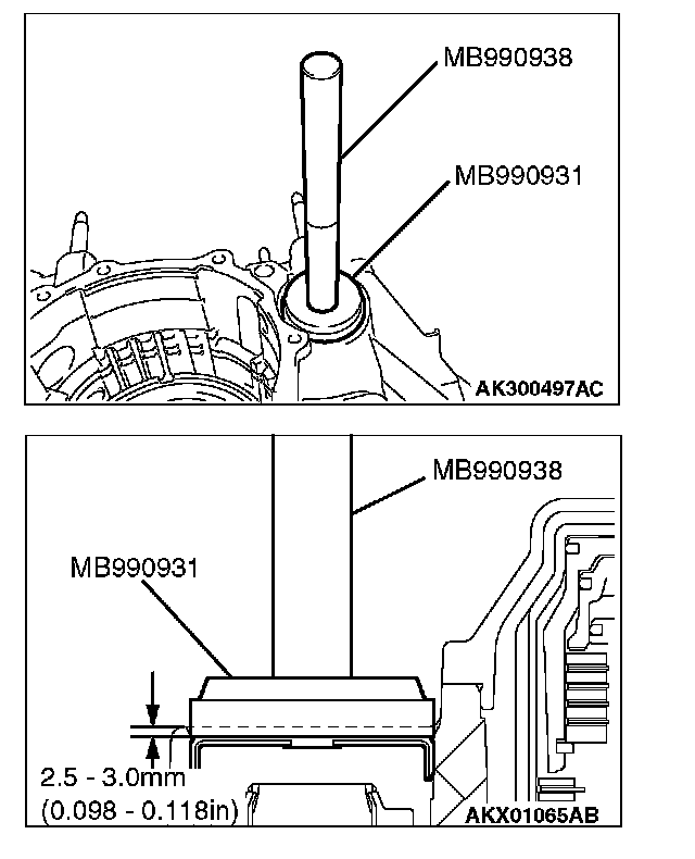 31. Use special tools MB990931 and MB990938 to install the cap as shown in the illustration.