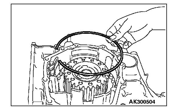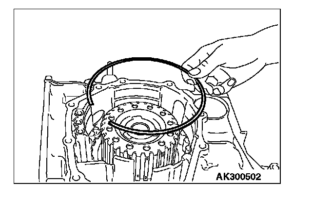 21. Install the snap ring into the groove of transaxle case output shaft bore.