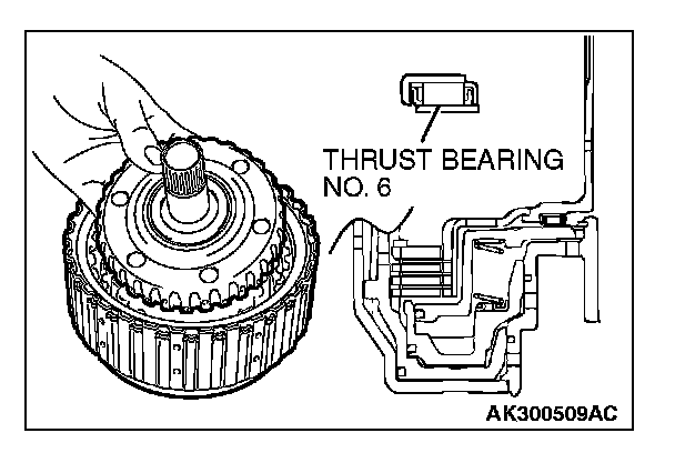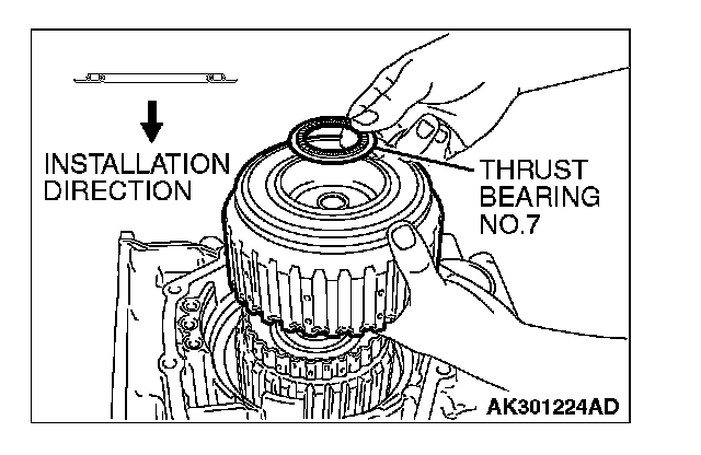 CAUTION: Be sure to install the thrust bearing in the correct direction as shown.