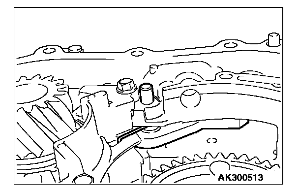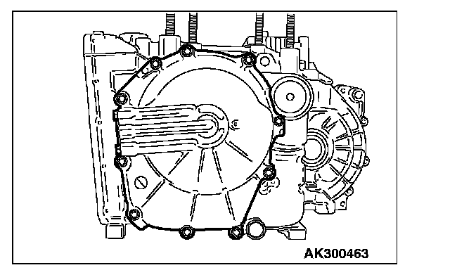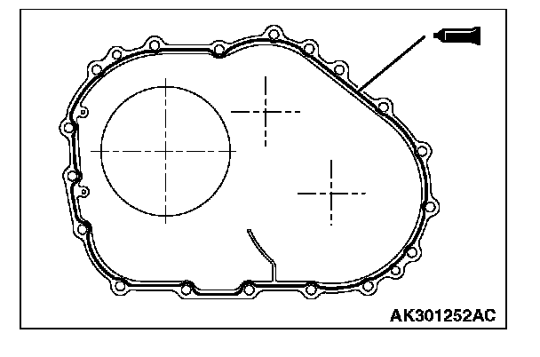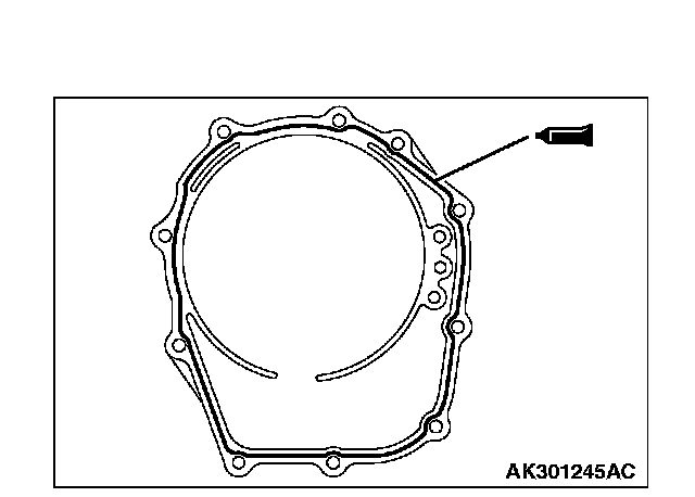 70. Apply a 1.6 mm (0.06 inch) diameter bead of sealant (Mitsubishi Genuine Part number MD974421 or equivalent) to the torque converter housing in the area shown.