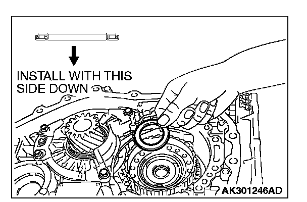 CAUTION: Be sure to install the thrust bearing in the correct direction as shown.