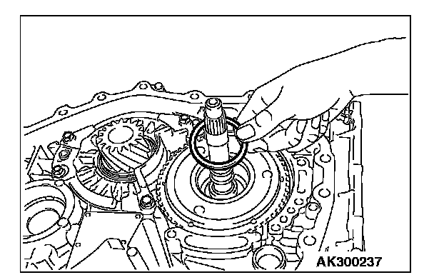 58. Adjustment of input shaft end play and select the thrust washer number 1. (Refer to adjustment of transaxle - thrust washer selection for adjustment of input shaft end play.)