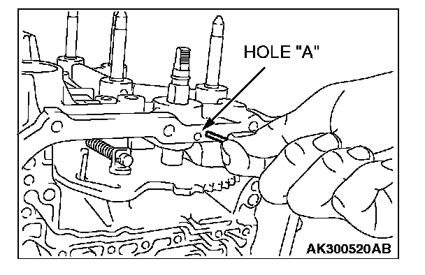 75. Align hole "A" with the groove in the manual control lever shaft. Insert the manual control lever shaft roller into hole "A."