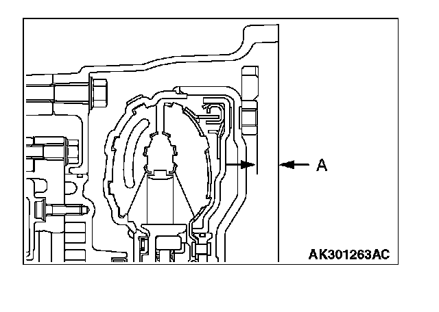 99. Install the torque converter, and align it with the oil pump so that the shown dimension "A" meets the reference value.