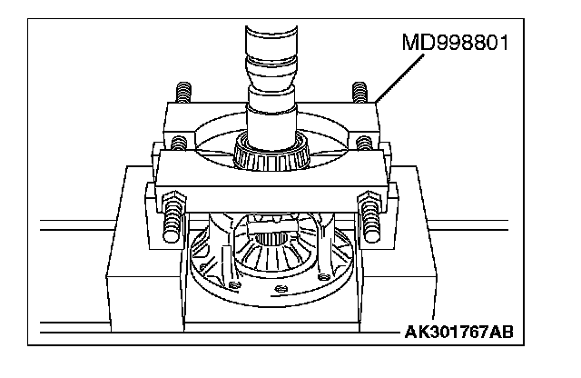 1. Support the taper roller bearing with special tool MD998801, and then set them on the press.