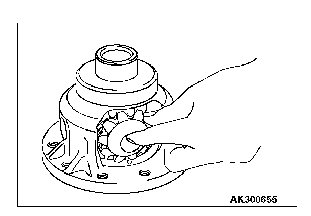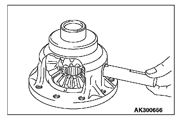 1. Mount a spacer on the back surface of the side gear, and then install the side gear in the differential case.