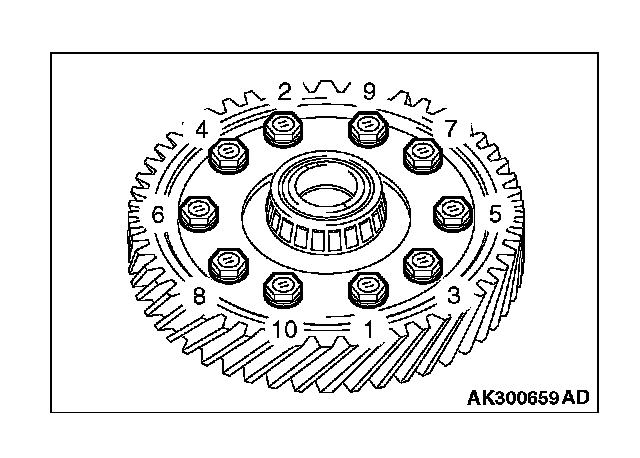 Apply ATF to the bolt, and then tighten the bolts to the specified torque in the sequence shown.