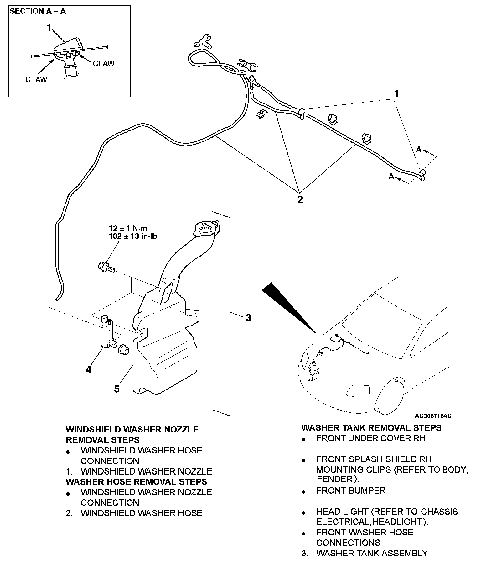 For removal and installation of the wiper and washer switch, refer to Chassis Electrical, Column switch.