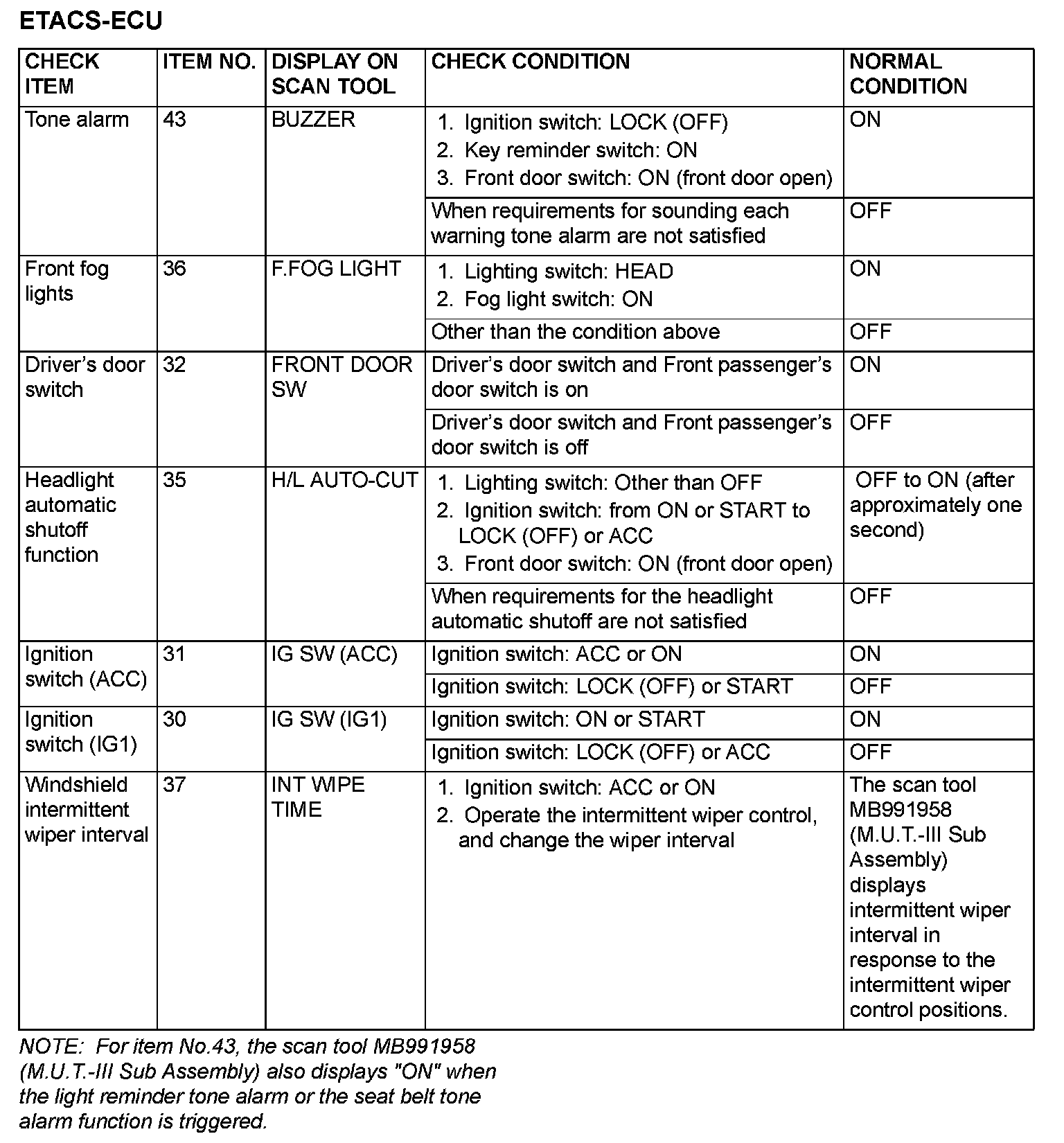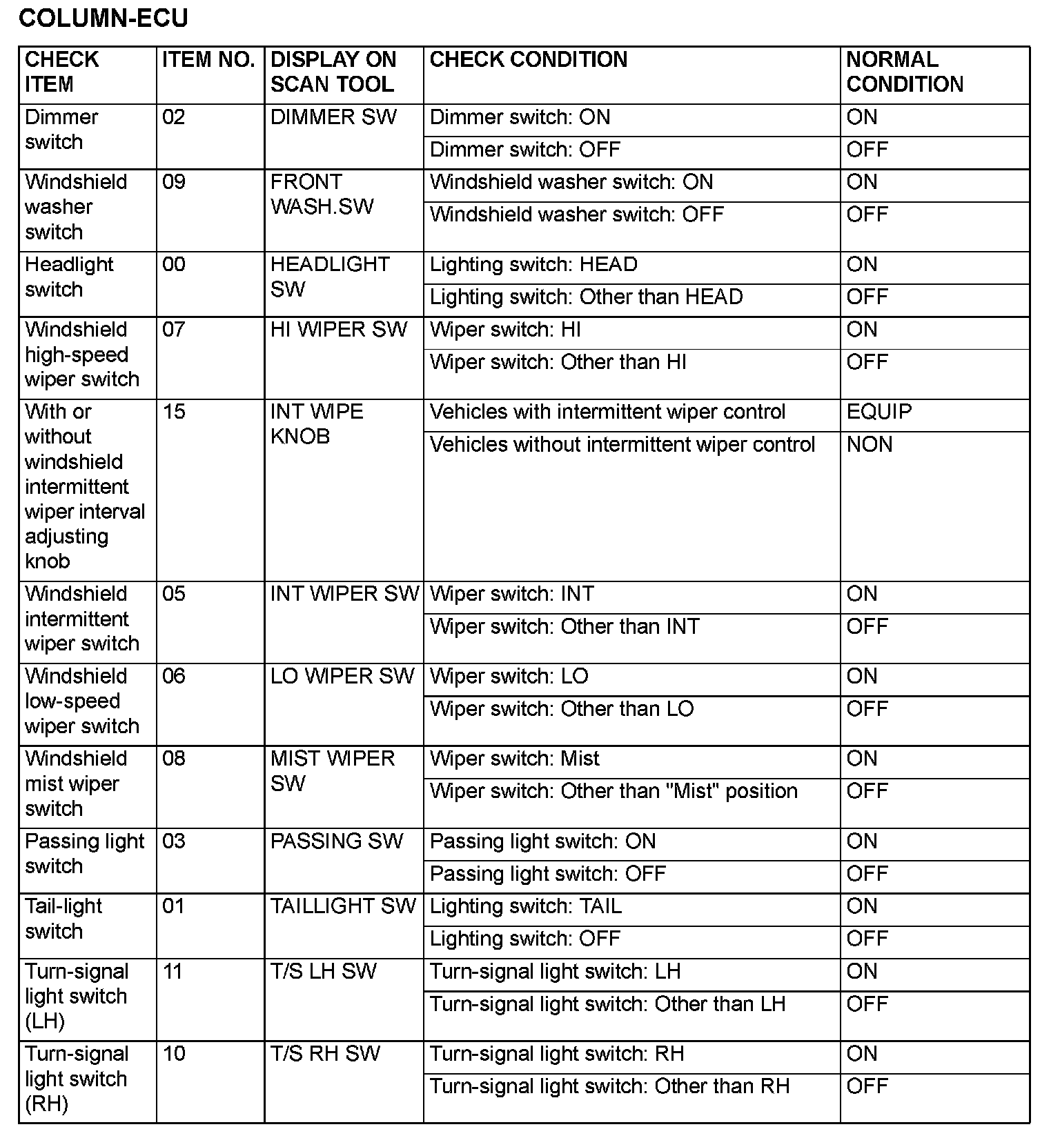 The table below shows the service data and their normal condition, which are displayed during the "Data List."