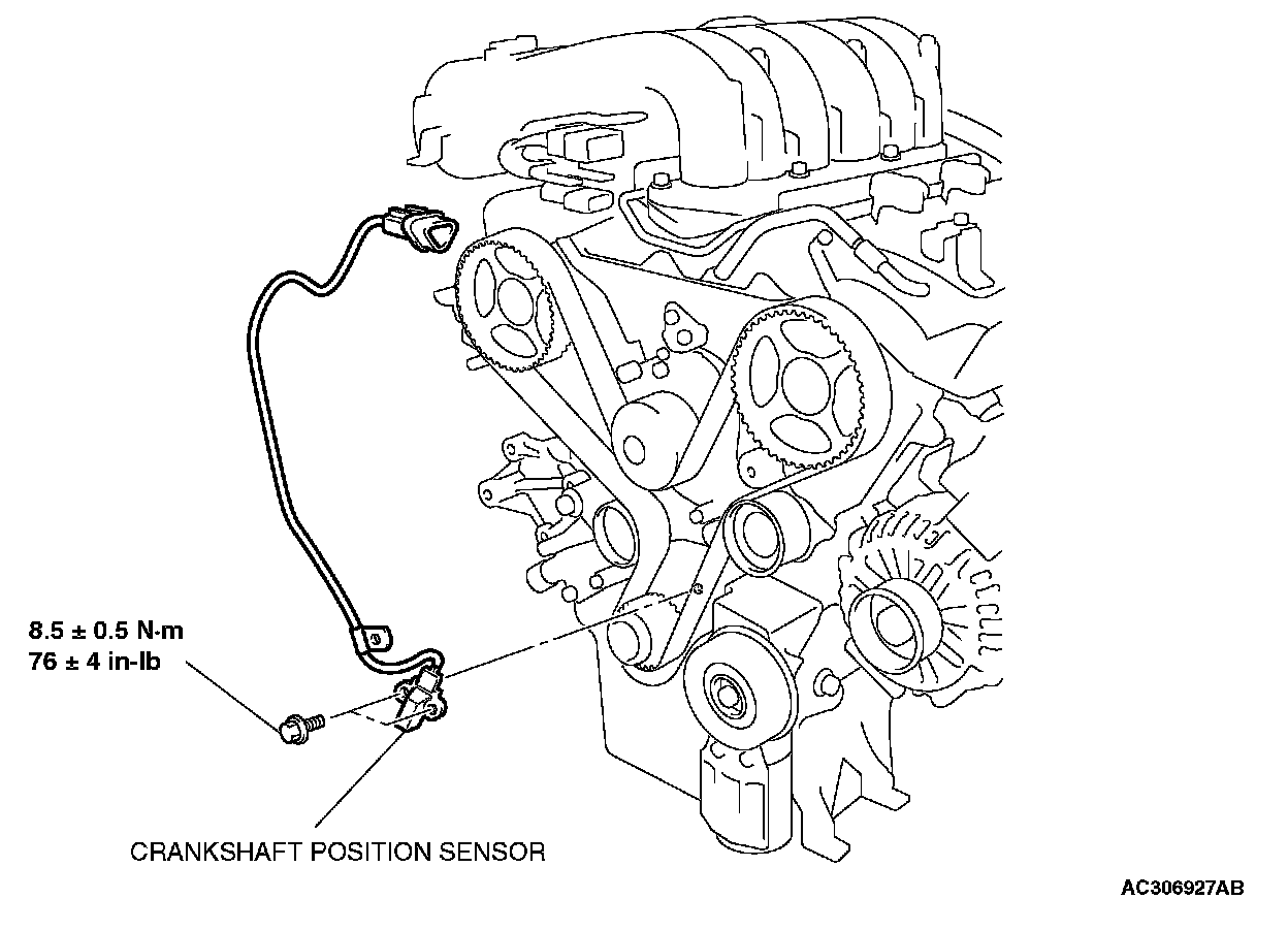 2. Tighten the crankshaft position sensor mounting bolts by hand.