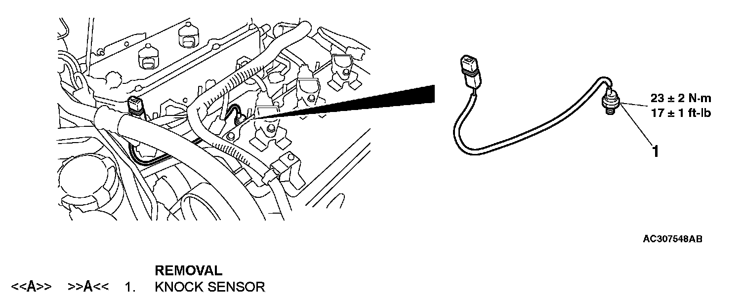 CAUTION: When the knock sensor replacement is performed, use scan tool MB991958 to initialize the learning value (Refer to General, Initialization Procedure for Learning Value in MFI Engine).
