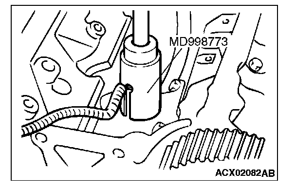Use special tool MD998773 to tighten the knock sensor to the specified torque in the same manner as removal.