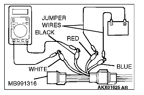 1. Disconnect the heated oxygen sensor connector and connect special tool MB991316 to the connector on the heated oxygen sensor side.