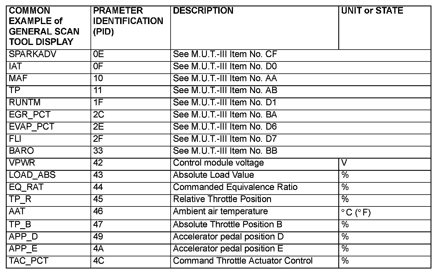 Freeze Frame Data Item for General Scan Tool (Part 1):