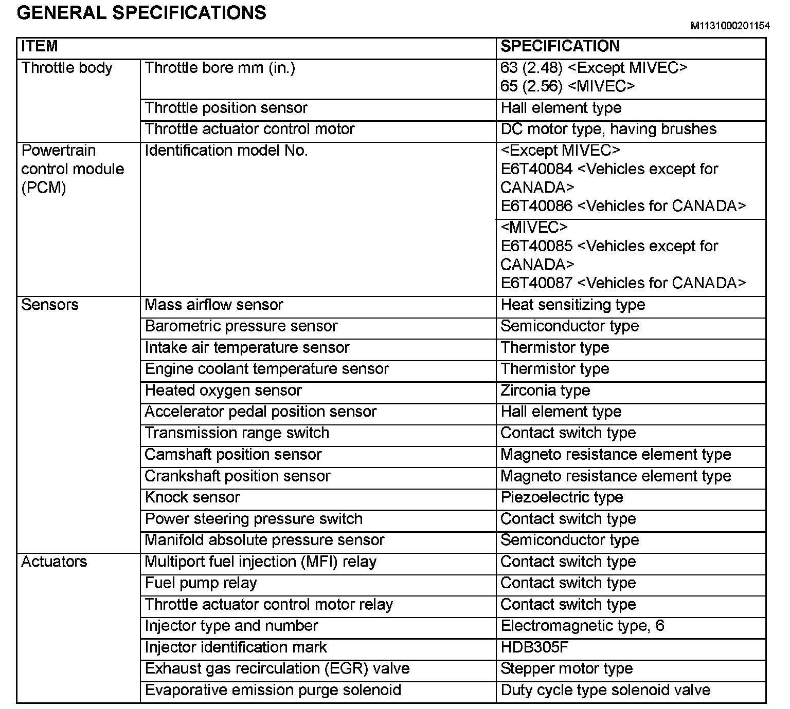 General Specifications:
