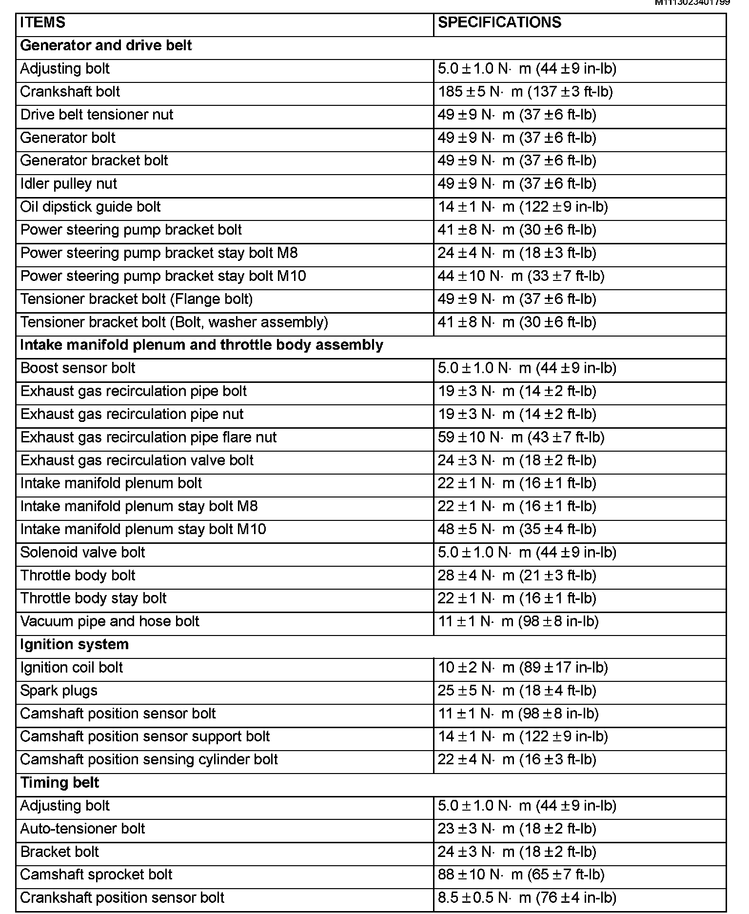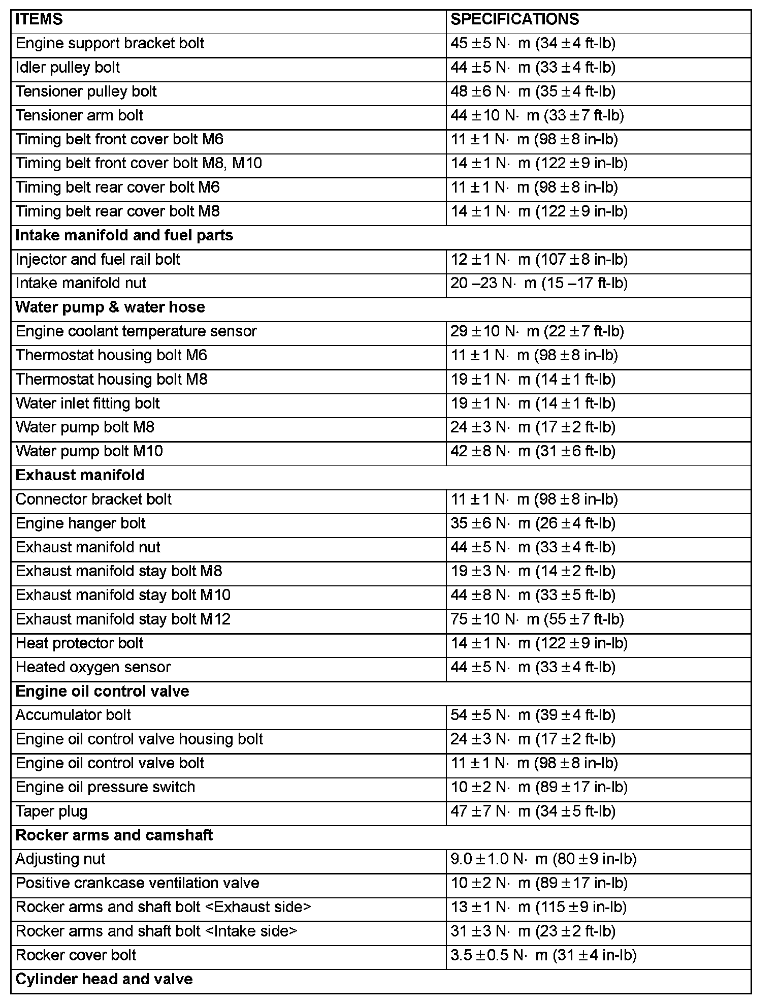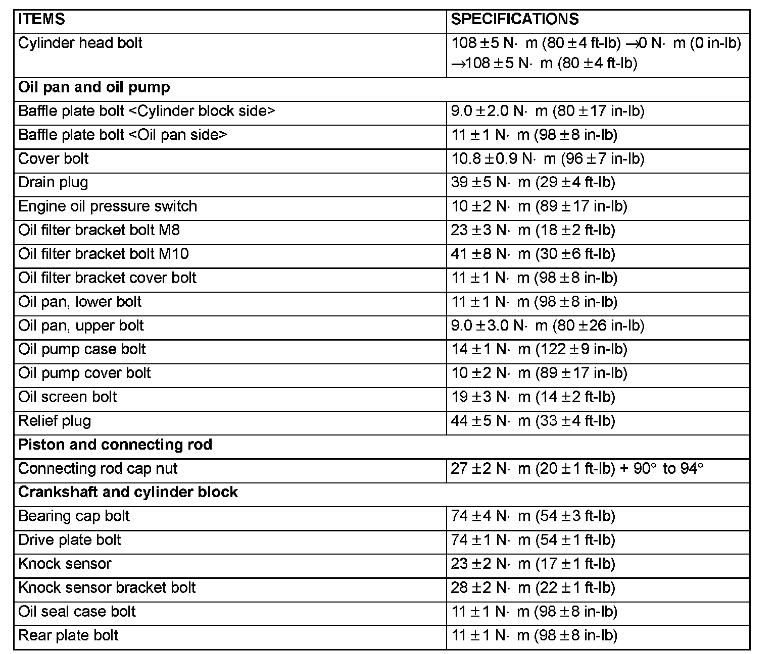 Fastener Tightening Specifications