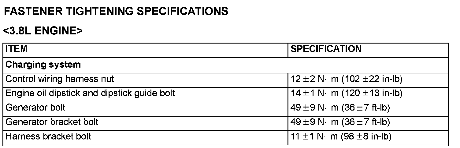 Fastener Tightening Specifications - Charging System: