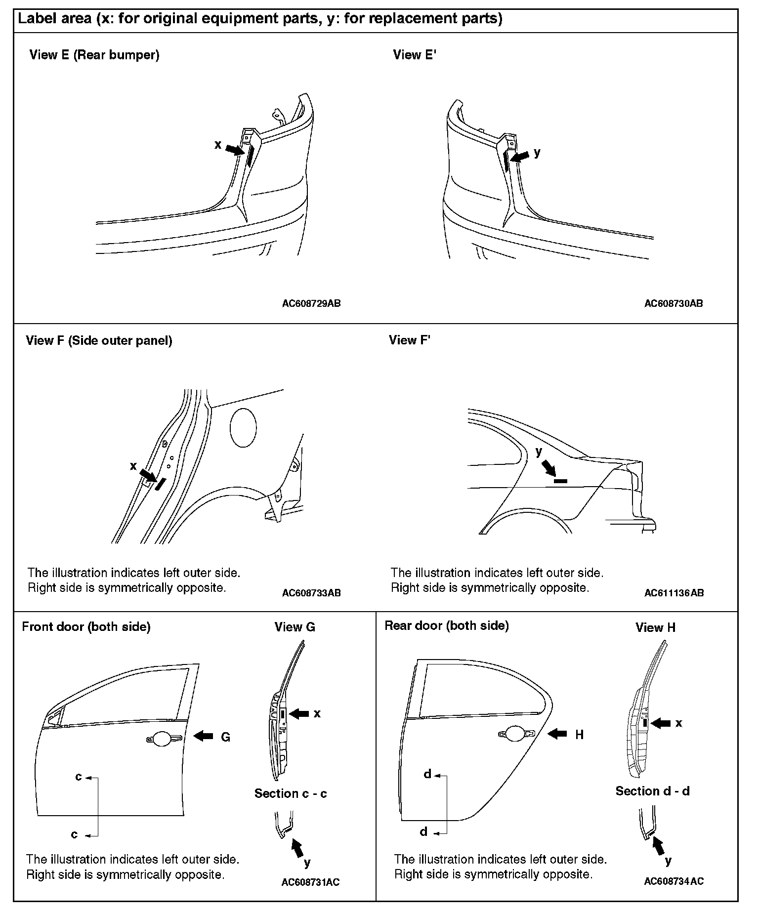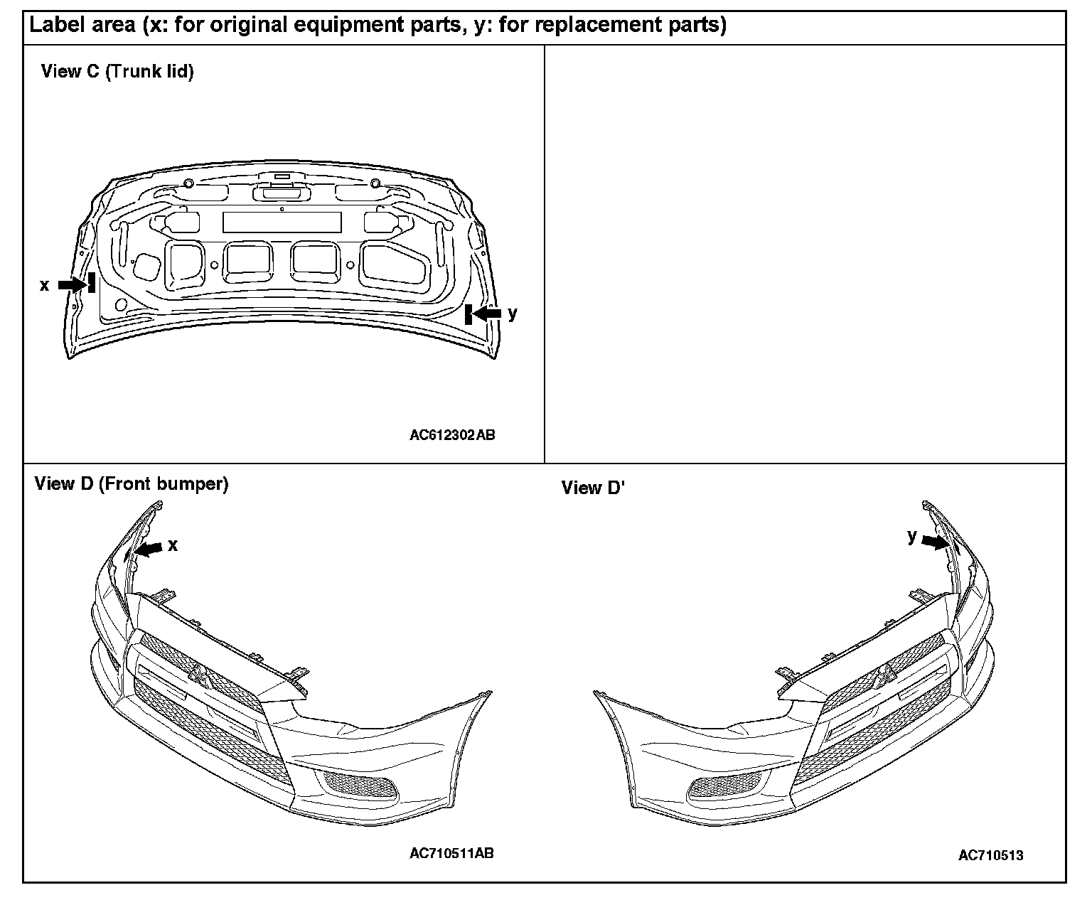 When replacing a part that has the theft protection plate, label or stamp on it, be sure that the part has either A or B shown in the figure. It is illegal if both A and B are attached, or neither A nor B is attached.