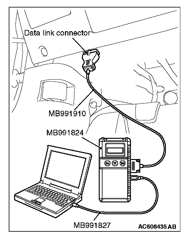 5. Connect special tool MB991910 to the data link connector of the vehicle.