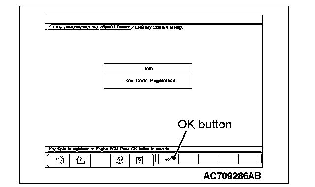 11. Push the OK button after "ENG key code & VIN Reg." is displayed.
